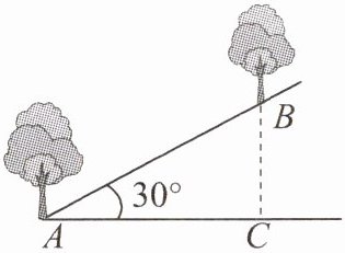 5. 如图,坡角为 $30^{\circ}$ 的斜坡上两棵树间的水平距离 $AC$ 为 $2\mathrm{m}$,则两棵树间的坡面距离 $AB$ 为(