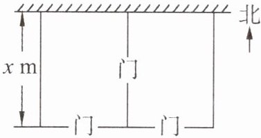 8. 某农场拟建两间矩形饲养室,一面靠着现有的墙(墙足够长),中间用一道墙隔开,并在如图所示的位置各留一道$1m$宽的门. 已知现有材料可建的墙体(不包括门)总长为$27m$.