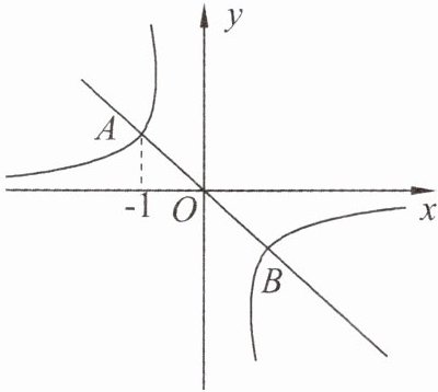 9. 如图,在平面直角坐标系中,一次函数$y = - x的图象与反比例函数y = \frac{k}{x}$的图象交于A,B两点.