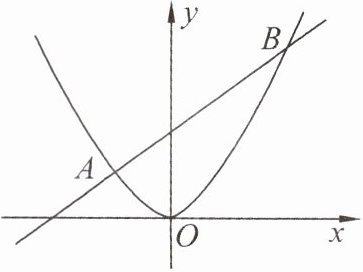 例 1 如图,一次函数 $ y = kx + b $ 与二次函数 $ y = ax^2 $ 的图象交于 $ A(-1, n) $,$ B(2, 4) $ 两点。