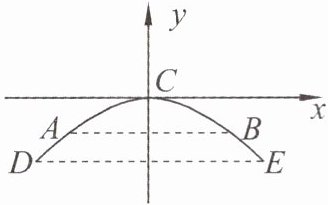 3. 如图,这是一座抛物线形拱桥的示意图,桥拱在竖直平面内,与水平桥面相交于 $ A $,$ B $ 两点,桥拱最高点 $ C $ 到 $ AB $ 的距离为 $ 9 \, m $,$ AB = 36 \, m $,$ D $,$ E $ 为桥拱底部的两点,且 $ DE // AB $。若点 $ E $ 到直线 $ AB $ 的距离为 $ 7 \, m $,则 $ DE $ 的长为 $\underline{