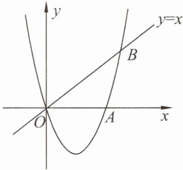 9. 如图,已知经过原点 $ O $ 的抛物线 $ y = ax^2 + bx(a \neq 0) $ 与 $ x $ 轴交于另一点 $ A(\frac{3}{2},0) $,在第一象限内与直线 $ y = x $ 交于点 $ B(2,t) $,求这条抛物线对应函数的表达式。