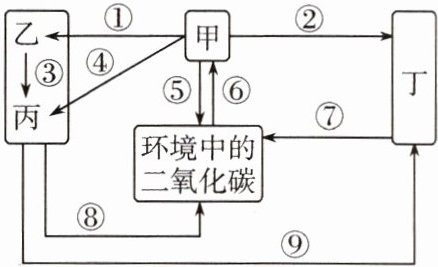 8. 如图是某生态系统的碳循环过程示意图(甲~丁代表生物成分,箭头表示碳的流动方向)。下列叙述错误的是(