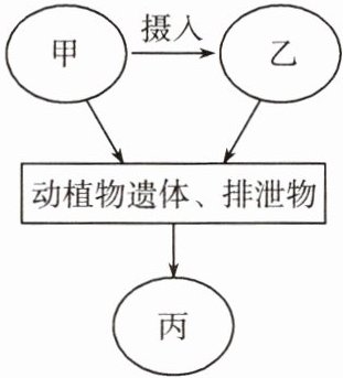 9. 如图表示生态系统部分成分之间的相互关系(甲、乙、丙表示三类生物成分)。下列叙述错误的是(