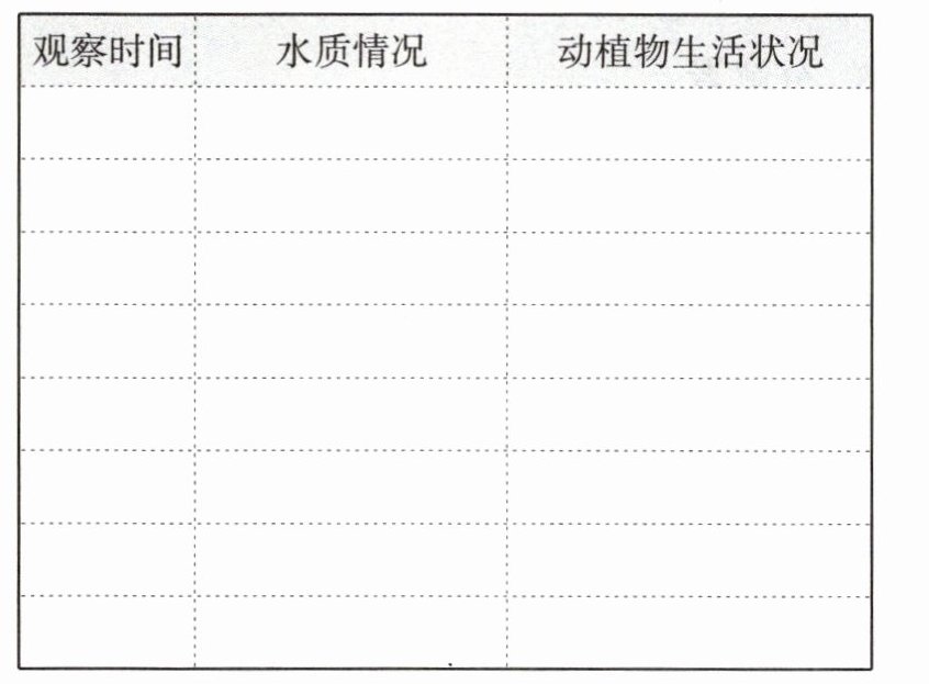 2. 坚持每天观察生态瓶,将水质情况和动植物生活状况如实记录在下表中。