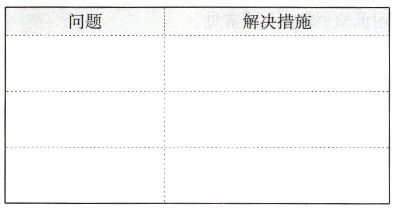 1. 在制订了方案之后,就可以开始制作生态瓶了。将你在实施方案的过程中遇到的问题及解决的措施整理在下表中。