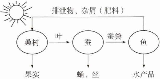 20. 桑基鱼塘是桑茂、蚕壮、鱼肥的高效人工生态系统。如图表示某桑基鱼塘人工生态系统,以下对该生态系统的描述,错误的是(