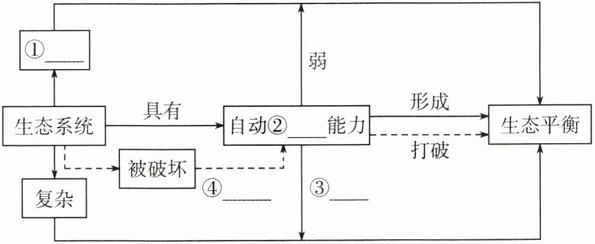 自我调节 结构和功能 生态平衡 新的平衡 遭到破坏 种类和数量 营养结构