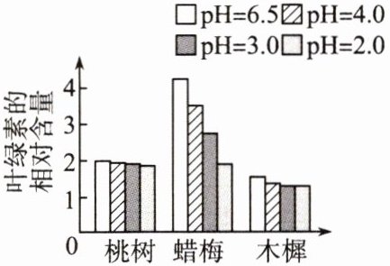 例3 某科研小组开展了关于不同pH的酸雨对三种植物叶绿素含量影响的研究,研究结果如图所示。请分析回答下列问题: