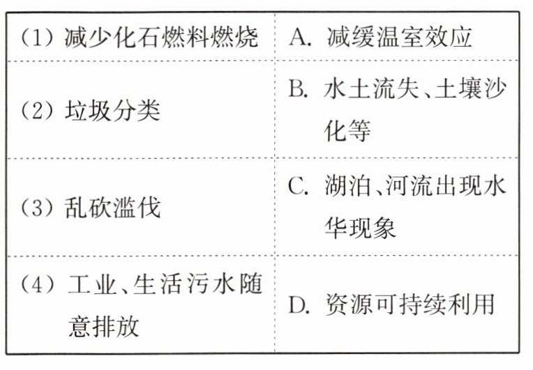 11. 请找出表中人类活动与对生态环境产生影响的对应关系。