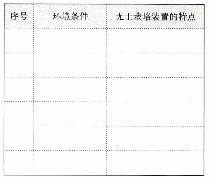 2. 无土栽培时,需要根据植物生长发育所需的环境条件,选择或设计恰当的装置,利用
