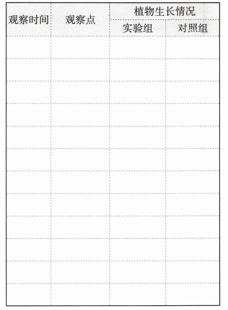 2. 按照计划种植植物,进行对照实验,坚持每天观察,将观察到的情况如实记录在表格中。