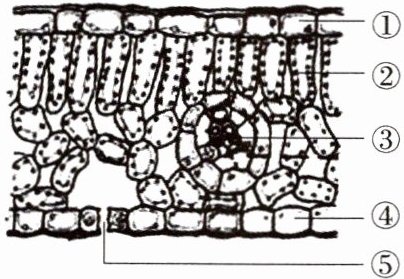 6. 如图为绿色植物的叶片横切面结构图,下列叙述错误的是(