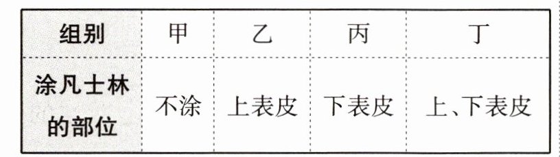 8. 凡士林能够堵住气孔,影响蒸腾作用。取甲、乙、丙、丁四组大小、发育程度相似、质量相同的新鲜菠菜叶,作如下处理。