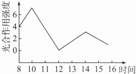 3. 如图是一株棉花在一天内光合作用变化图,纵坐标表示光合作用强度,横坐标表示时间(从8点到16点),下列说法错误的是(