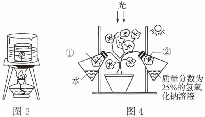 D.图4中的两组叶片,脱色、漂洗后滴加碘液,②号叶片会变蓝