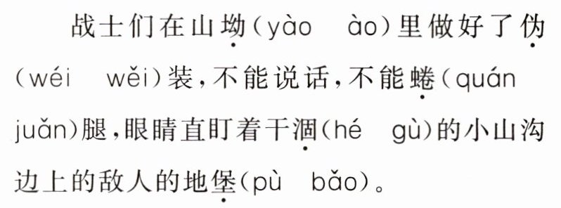 )。A.从文中描写战士们潜伏的环境的段落可以看出,他们的处境很危险,只要发出一丝响动,就有可能会被敌人发现,这为后文写邱少云烈火烧身时的表现做了铺垫