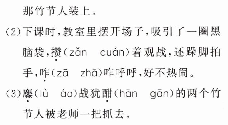 这部分内容更深入地表现了“我们”对竹节人玩具喜爱至入迷,才会在上课的时候忍不住去玩;玩竹节人受到老师的青睐,侧面烘托出这个游戏的有趣,表达了“我们”内心的喜悦、满足与自豪;在对这个游戏的回忆中加入了可爱可亲的老师,竹节人和老师共同构成了“我”童年的美好回忆,深化了文章的主旨。