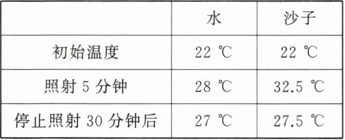 2. 打开浴霸灯照射5分钟,测量水和沙子的温度。