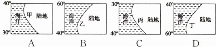 D. 夏季陆地气温高,海洋气温低