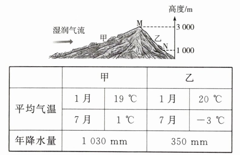 )A. 甲地的降水量多于乙地,甲为迎风坡
