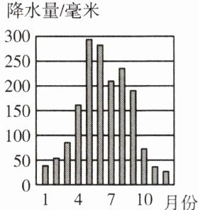 12. 通常把月降水量超过100毫米称为多雨,该地多雨的月份有 (