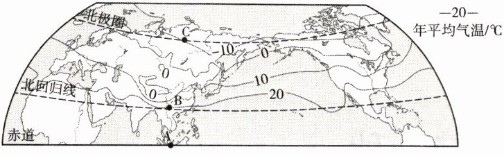 (1) 由图可知,从A地到B地到C地纬度越来越