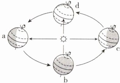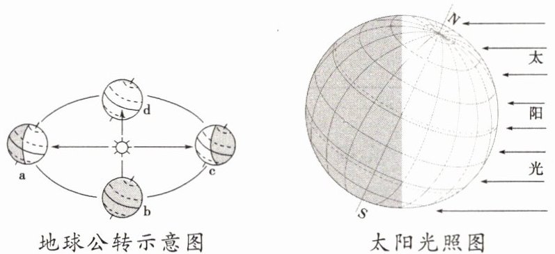 3. 读地球公转示意图及某日太阳光照图,此时地球在绕日公转轨道上的位置及北半球的节气是(