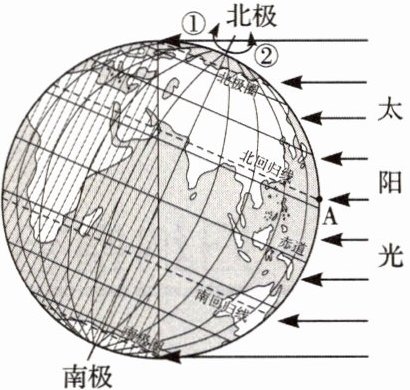 (1) 图中地轴上的箭头正确表示地球自转方向的是______(填数码)。