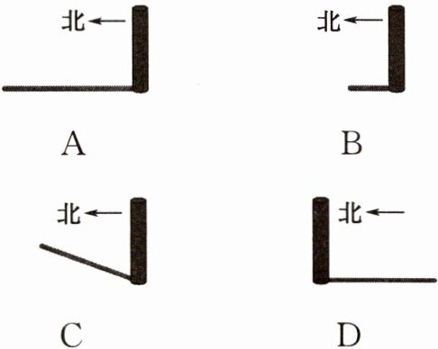 8. 6月20日,北京天安门前的旗杆,正午时的影子最接近下图中的(