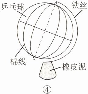 (3)图④是某同学采用棉线缠绕乒乓球的制作方案制作的地球仪的作品,图中棉线代表的是