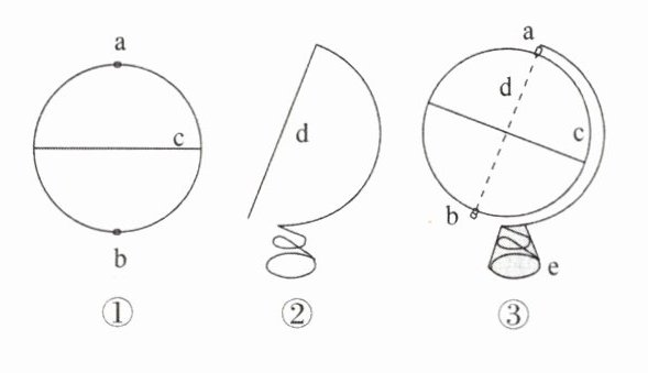 (1)第一步:图①所示是制作地球仪的乒乓球,先在乒乓球中部画上一个圆圈,圆圈c代表