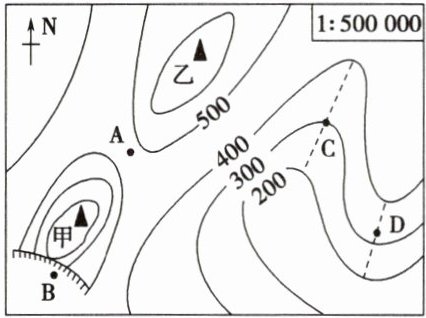 8. 读等高线地形图(单位:米),下列叙述不正确的是(