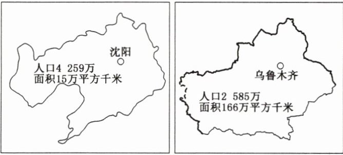6.下面两幅图是我国辽宁、新疆两个省级行政区的示意图(图幅大小相同)。关于两幅图的叙述,正确的是(