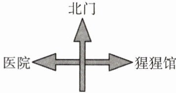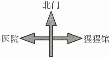 (5)图案设计:北门指示牌处,向上箭头标“北门”,向左箭头标“医院”,向右箭头标“猩猩馆”