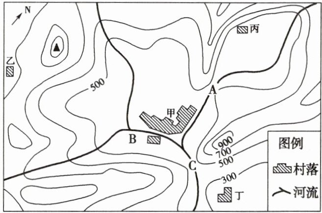 。(4)与其他三村落相比,甲村落形成的最有利条件是