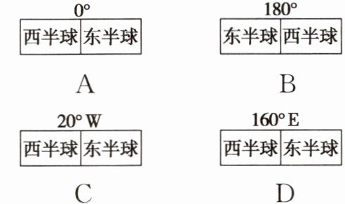 D.一般以 $20^{\circ}$E 和 $160^{\circ}$W 组成的经线圈划分东西半球