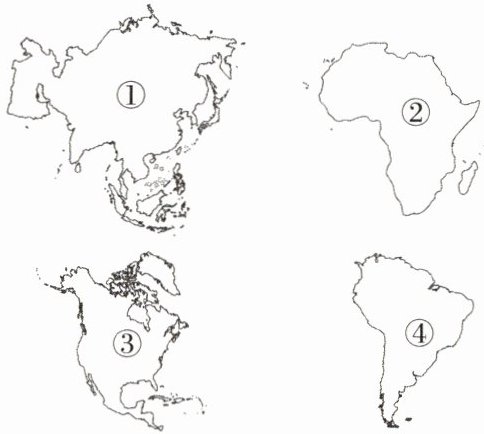 ①亚欧大陆 ②南美洲大陆 ③非洲大陆 ④澳大利亚大陆 ⑤南极大陆