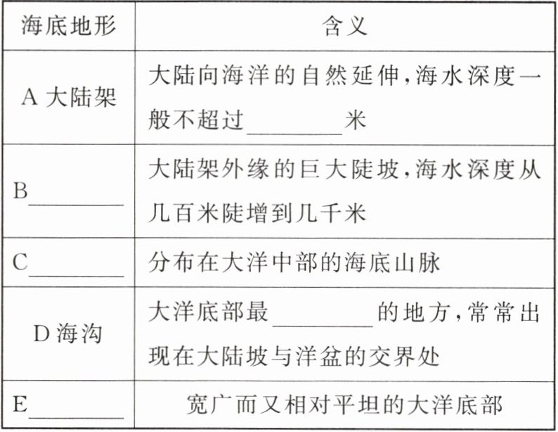 3. 主要大洲的地形特征:非洲的地形比较单一,以