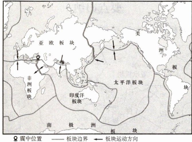 1. 图中地震位于(
