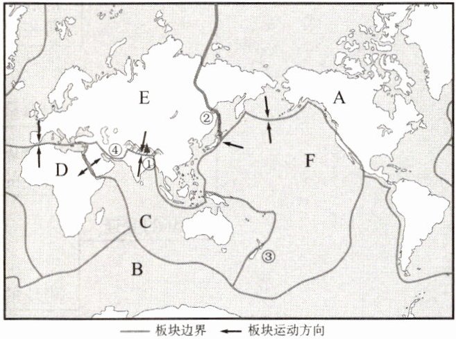 地带;①④地地震多发,是因为其位于地中海—喜马拉雅