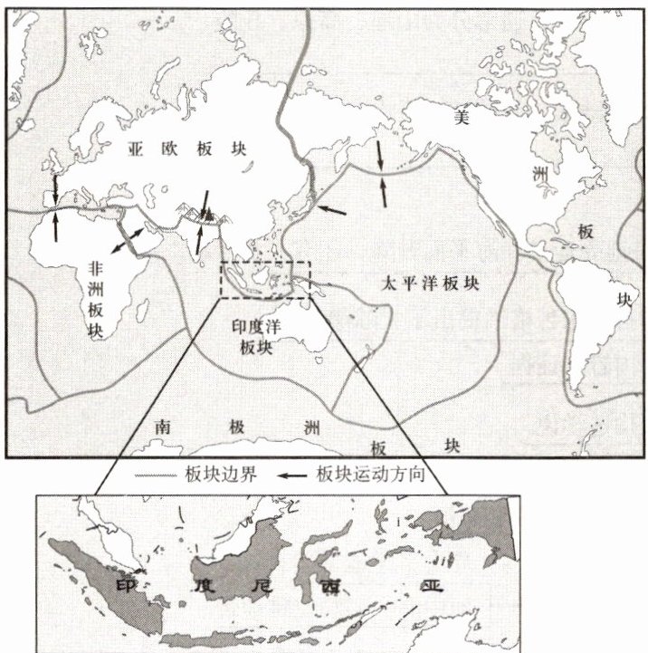 洋。(2)印度尼西亚是世界上火山最多的国家,有“火山国”之称。印度尼西亚多火山、地震的原因是