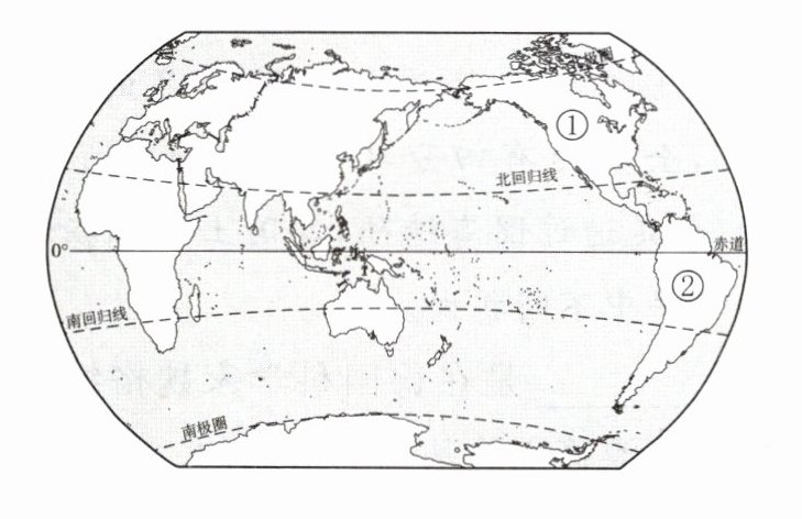 [解析] 第1题,读图可知,七大洲中,被南回归线穿过的有南美洲、非洲、大洋洲。第2题,读图可知,图中①大洲是北美洲,②大洲是南美洲,两大洲的分界线是巴拿马运河。
