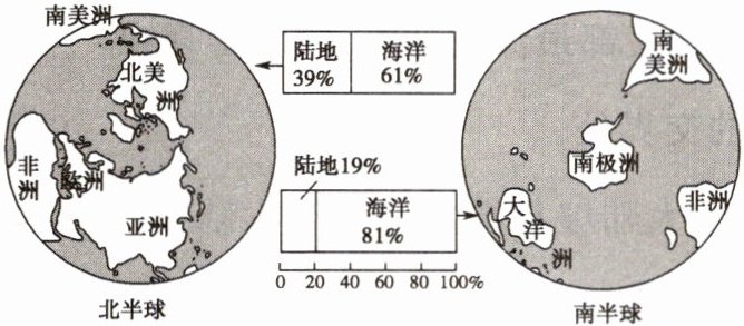 C.地球表面以海洋为主,陆地主要集中在南半球