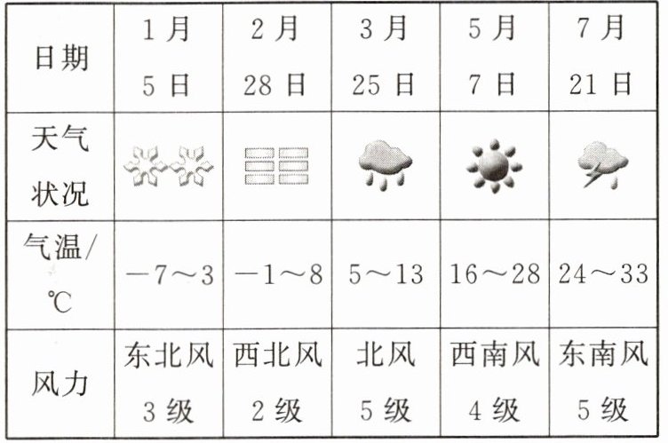 (2)图中天气符号表示降水形式的有1月5日的中雪、