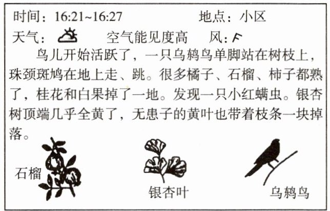 下图为一位苏州的中学生记录的自然观察笔记。据此回答6~7题。