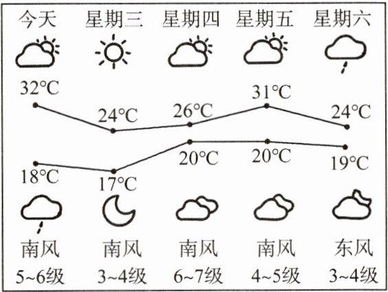 小明常关注天气预报,下面是他查到的烟台近期天气预报图。据图完成8~9题。