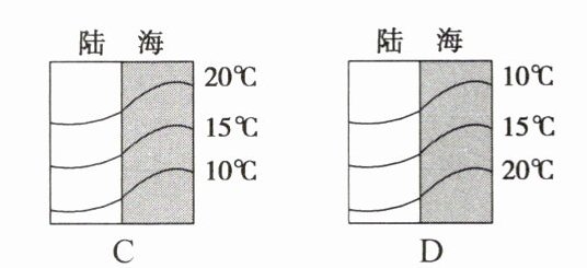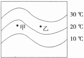 1. 读某地区 7 月等温线分布图,甲、乙两地中有一地为海洋。下列叙述中,正确的是