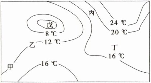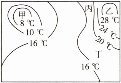 )A.甲处和乙处位于同一条等温线上,气温相同