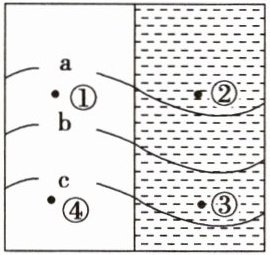 6. 读等值线分布图,图中数值 a>b>c,下列叙述正确的是